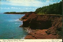 Colour photograph the cape at the edge of the rocky shores of Prince Edward Island.