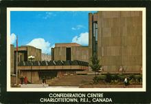 Coloured photograph showing the main entrance to the Confederation Centre of the Arts.