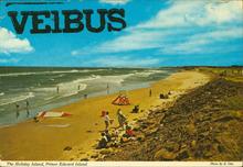 Colour photograph showing a view of Cavendish Beach.