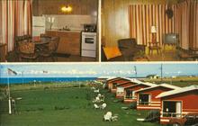 Colour photographs showing the cottages at "Cavendish By The Sea" and their interior.