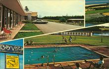 Two colour photographs of Bay Vista Motor Inn. One photograph of the front of the Inn and another of the pool.