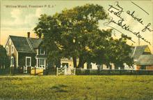 Coloured photograph showing a farmhouse in Freetown, P.E.I.