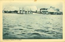 Coloured photograph showing the boats docked at Charlottetown Harbour.