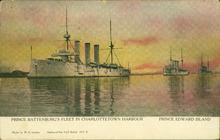 Coloured photograph showing Prince Battenburg's Fleet in Charlottetown Harbour.