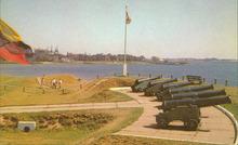 Colour photograph looking over the canons of the Prince Edward Battery.