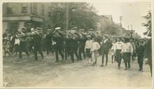 A collection of black and white photographs from a parade in downtown Charlottetown in 1910.