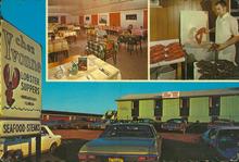 Colour photograph showing the Chez Yvonne restaurant, and its interior.