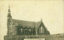 Black and white photograph of St. Mary's Roman Catholic Church.