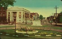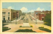 Plastichrome photograph of the Soldier's Monument in front of Province House.
