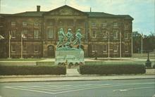 Black and white photograph of Province House and the War Memorial.