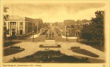 Coloured photograph of Great George Street looking north from Province House.