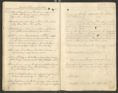 [List entitled 'Various Communications' that refers to 'sale of Indian Reserves']