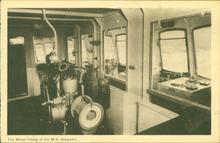 Black and white photograph of the Wheel House of the M.V. Abegweit.